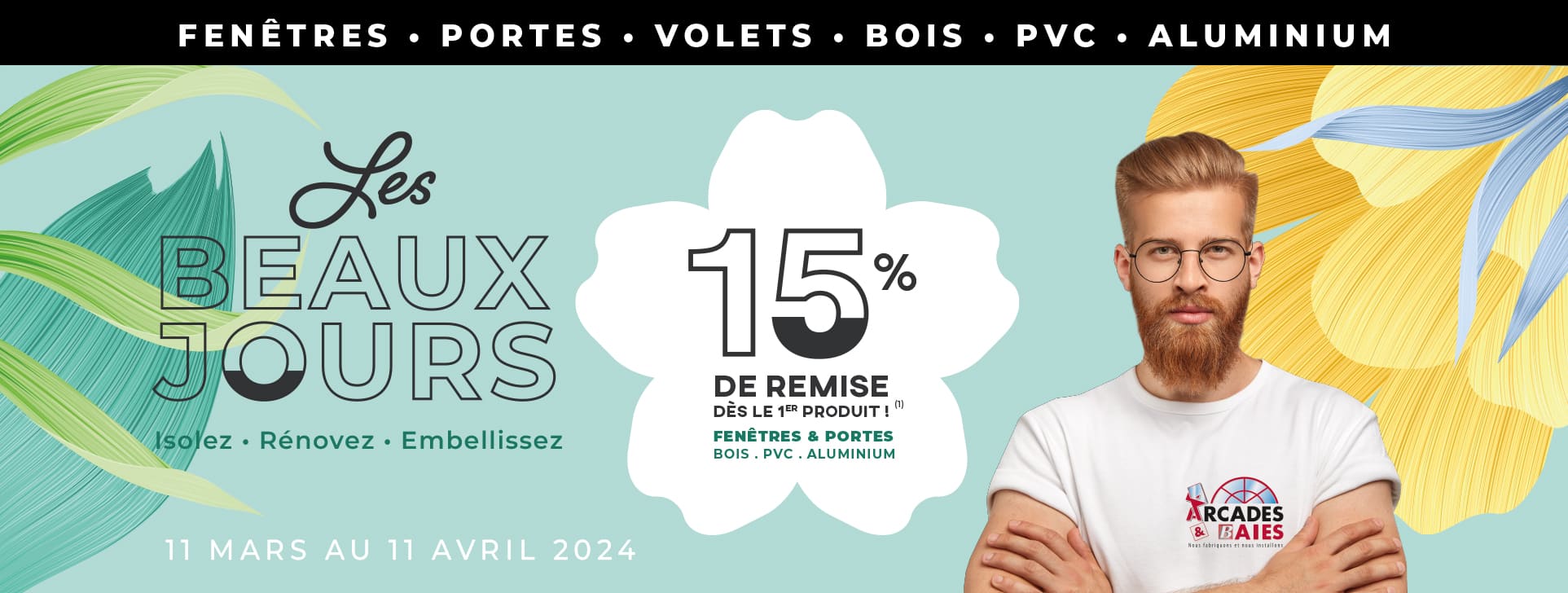 commande passée entre le 11 MARS et le 11 AVRIL 2024 sur les gammes de menuiseries «Arcad’Lux» et